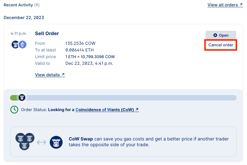 - You can also view your order on CoW Explorer.