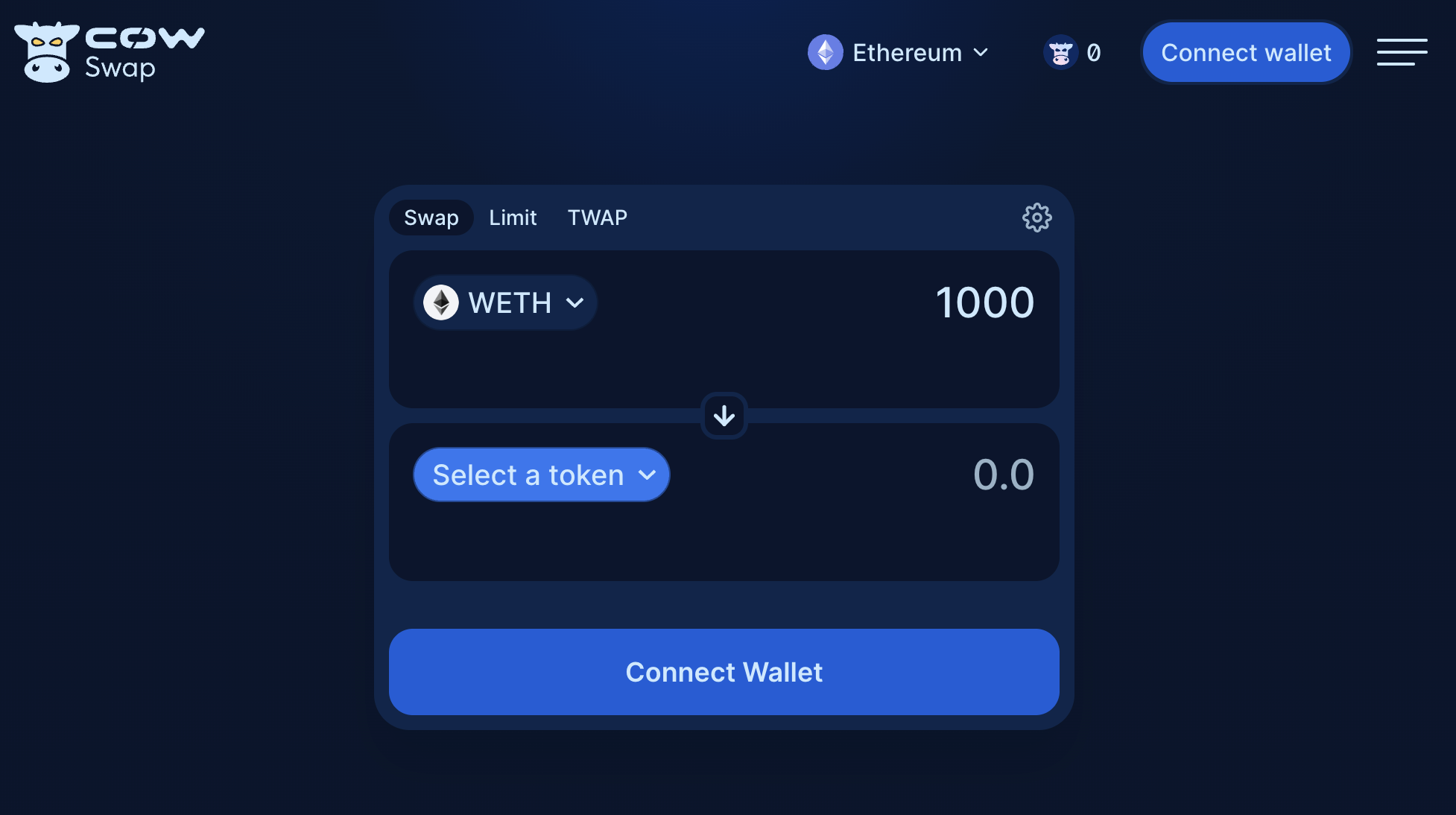 Go to CoW Swap and connect your web3 wallet.If you don’t have a web3 wallet yet, you can easily get one! Here are some suggestions: